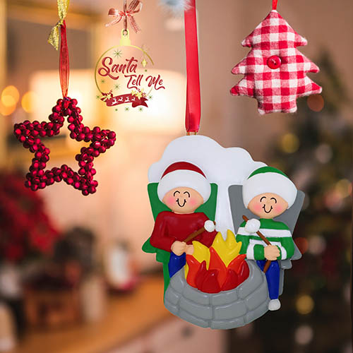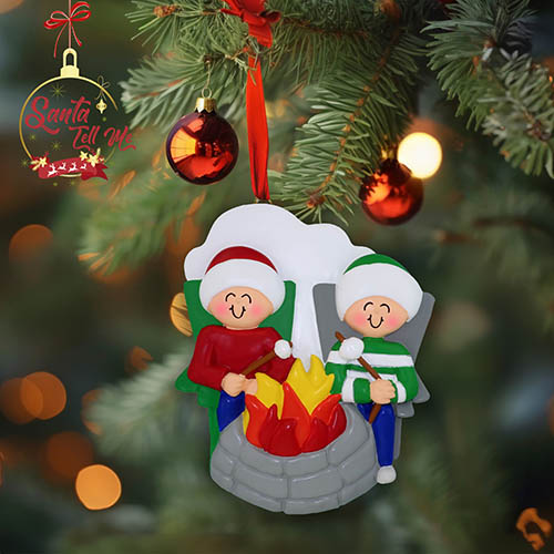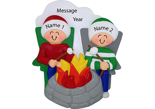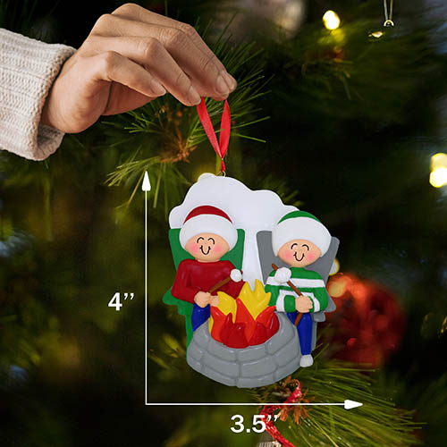 This personalized camping ornament is a fun 2025 keepsake for happy campers and outdoor-loving families! Featuring marshmallows and a cozy campfire scene, it’s perfect for couples or a family of two celebrating their first Christmas together. Add names to create a custom ornament full of adventure and warm memories.